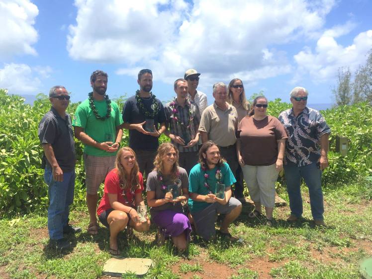 In announcing the award, a USFWS news release noted, “For more than 10 years, members of the KESRP have demonstrated their dedication, technical expertise, and willingness to forge new partnerships to achieve recovery progress for the federally threatened Newell’s shearwater and endangered Hawaiian petrel. The team has led innovative studies that have greatly improved our knowledge of seabird behavior and species distribution. Further, they have developed new monitoring methods to obtain data on seabird flight heights, concentrations of new breeding areas, and seabird interactions with man-made structures. This information has been vital in helping the U.S. Fish and Wildlife Service refine seabird recovery criteria, improve population viability models for these species, and inform decision-making related to habitat conservation plans. Working cooperatively with numerous organizations and stakeholder groups, the team will continue to help these extraordinary species progress toward recovery.