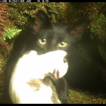 LIHU‘E – 26th June 2014 -Scientists reported today that feral cats are killing endangered seabirds in large numbers even in the most remote and rugged rainforests of the mountains of Kaua‘i. Cameras placed on endangered seabird burrows on Kaua‘i this season have filmed feral cats entering burrows and killing breeding birds, according to the Kaua‘i … More Feral Cats Caught On Camera Killing Endangered Seabirds