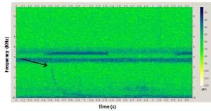 spectrogram of NESH colliding with powerline (Conservation Metrics Inc)